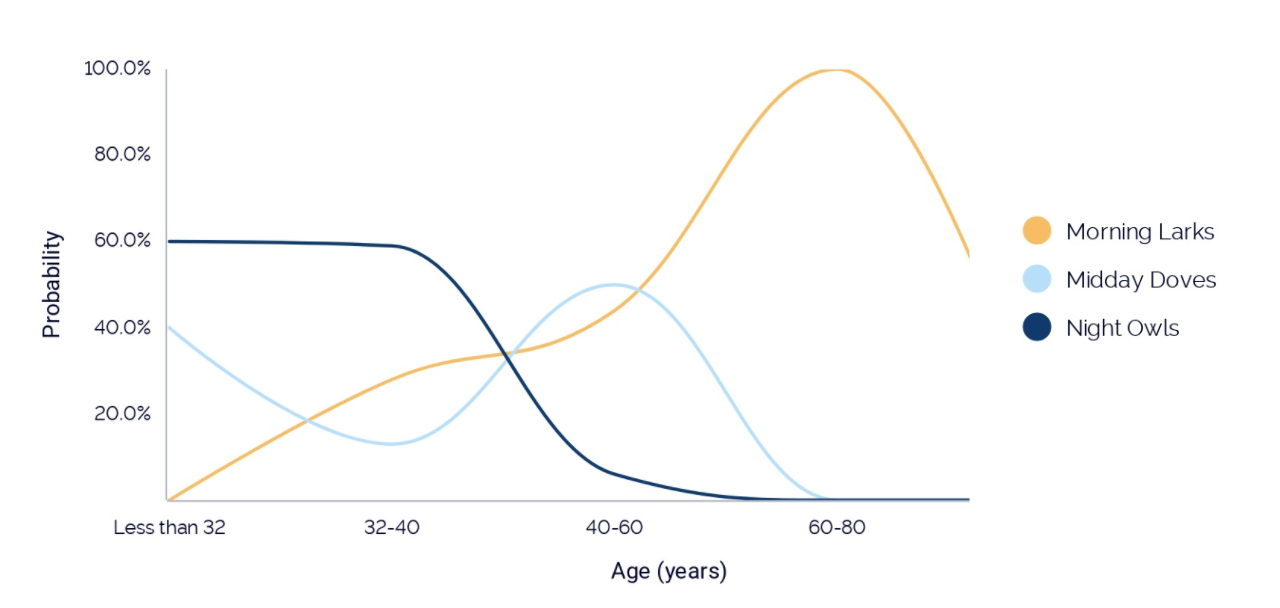 But why is this data important? Understanding biological sex and age influences on chronotypes can help tailor work schedules and optimise people’s performance and productivity. Learn more about your chronotype and circadian rhythms with LYS.